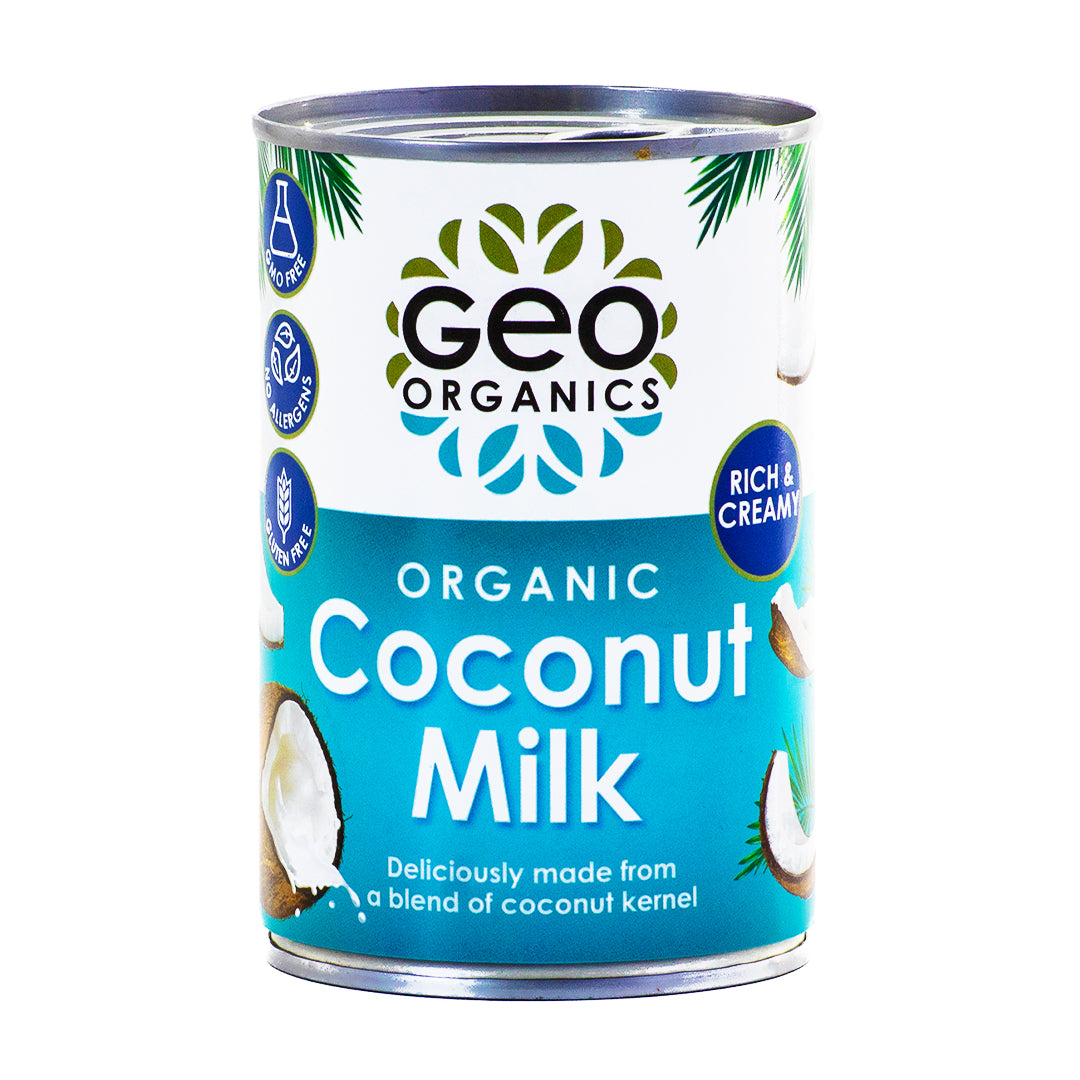 Rich, creamy and full of flavour our Geo Organics Coconut Milk is perfect for preparing Curries, Soups, Sauces, Desserts and Drinks. Geo Organics Coconut Milk is produced from the emulsion extracted from the kernel of matured organic coconuts. It is one of the most flavoursome milks, a healthy and vegan alternative to cow’s milk.