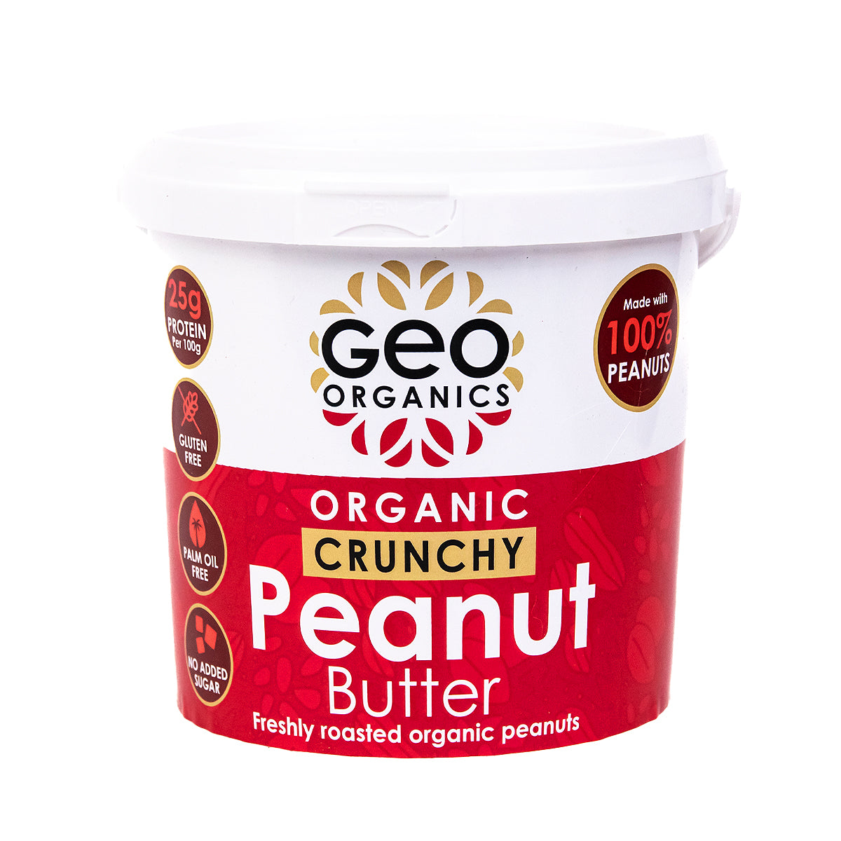 "Geo Organics 100% Natural Crunchy Peanut Butter is naturally sweet with a satisfying texture. We make it in small batches from select, freshly roasted organic peanuts with no added sugar or palm oil. Not even salt is used in this exceptional product, only 100% organic peanuts. Peanut Butter is a great source of protein, fibre, and good fats. It's perfect with toasted bread or bagels, delicious with your favourite fruit, and can be added to your recipes for a nutty flavour."